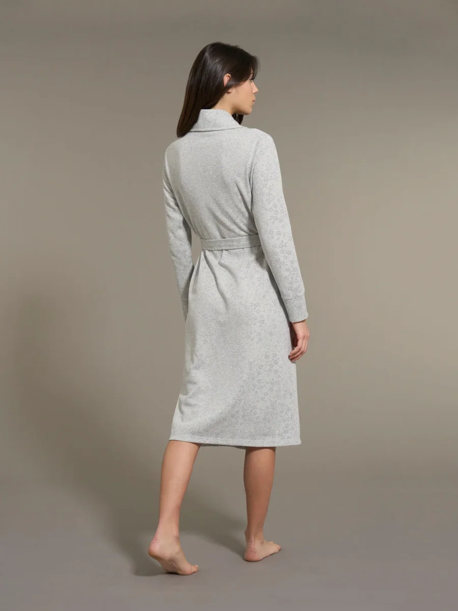 Esplora il comfort della nostra esclusiva vestaglia lunga da donna, realizzata con tessuto Cotton Eco Pile e Lurex . Perfetto per mantenerti al caldo e avvolgerti in una dolce morbidezza durante le fredde notti invernali.