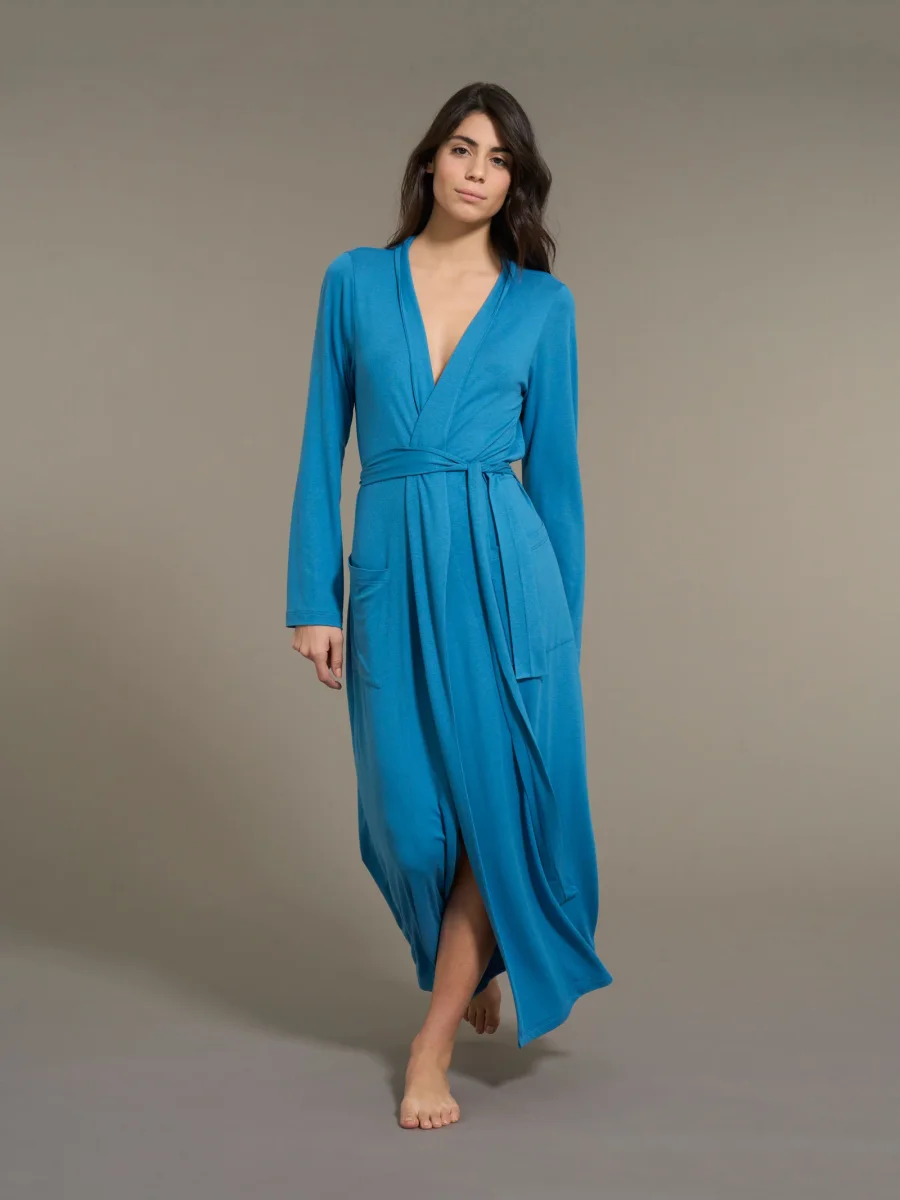 Sorprenditi con la nostra vestaglia lunga da donna in interlock micromodal.
