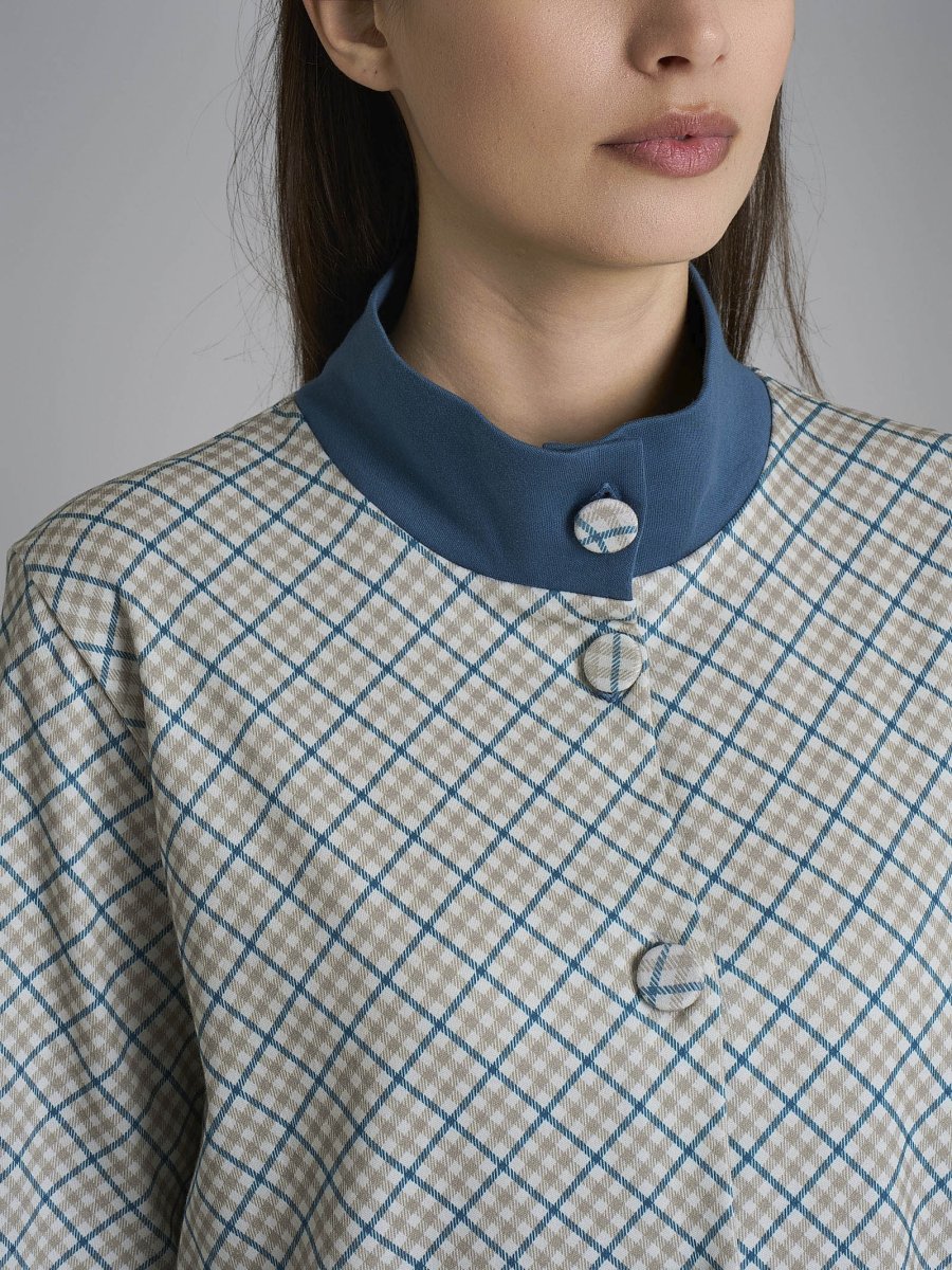 Vestaglia tartan aperta con collo alto in Interlock di cotone – Fant. Real Teal Tartan