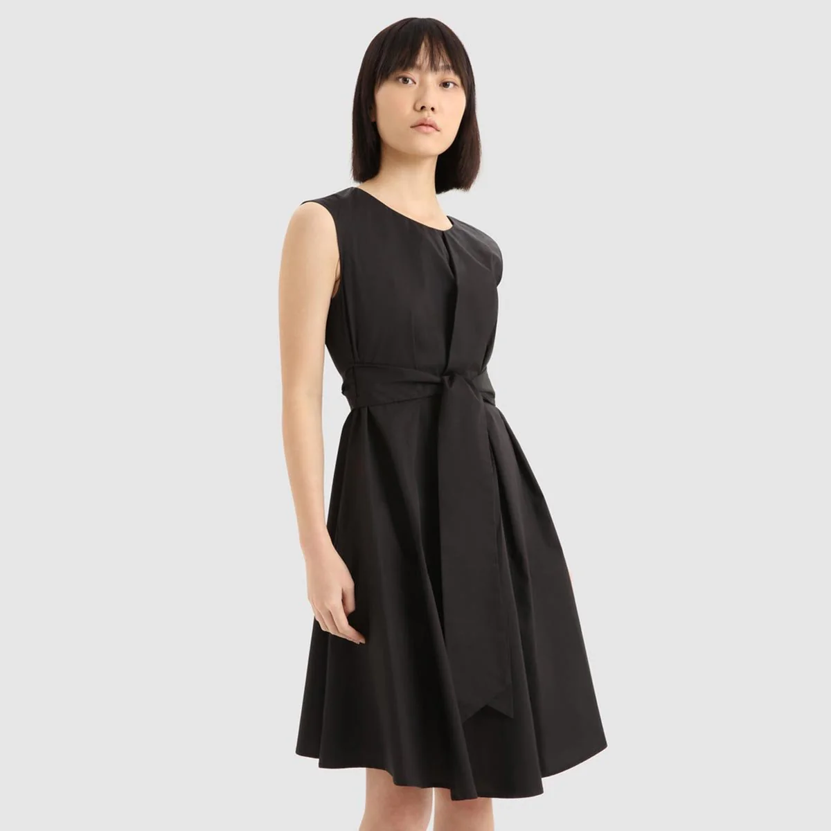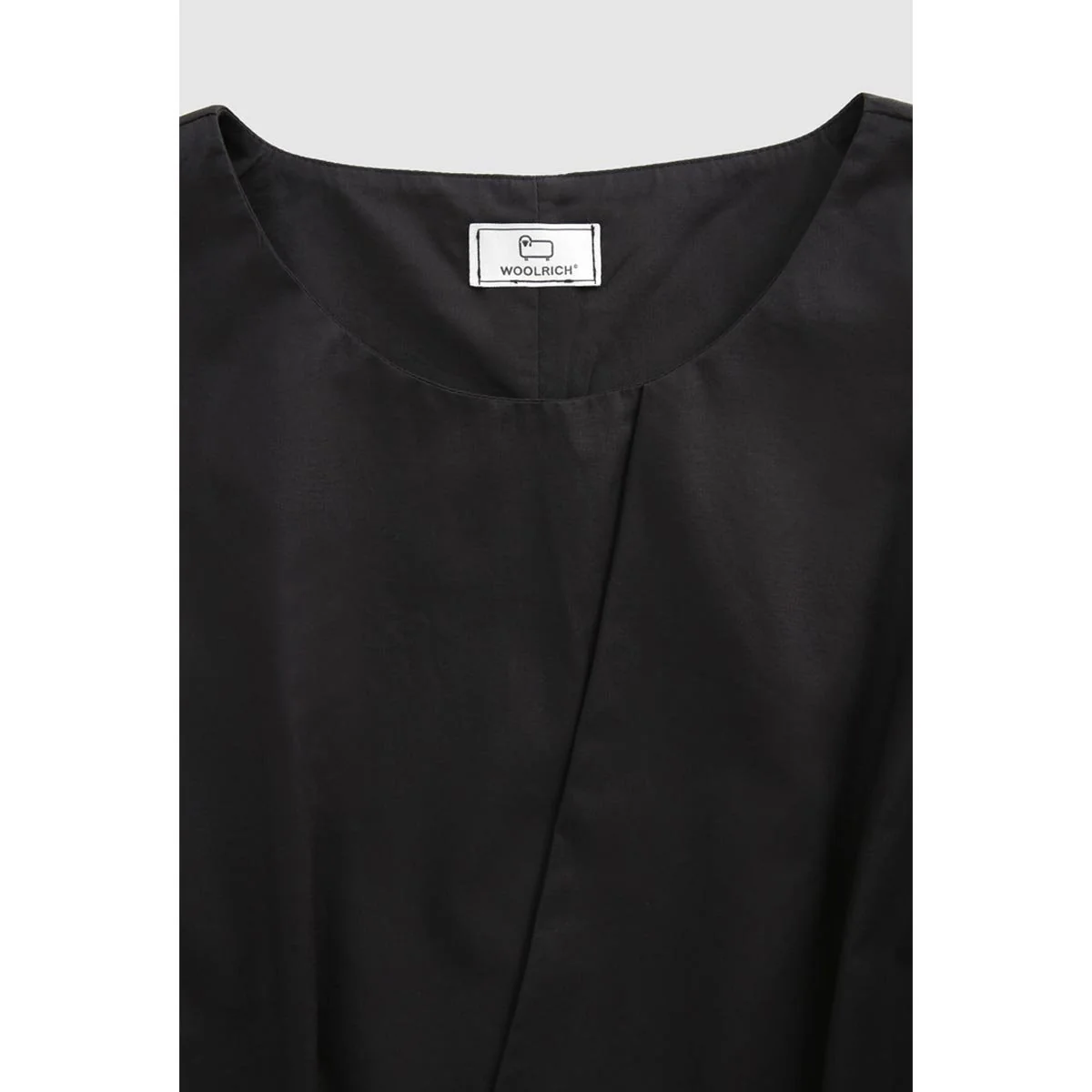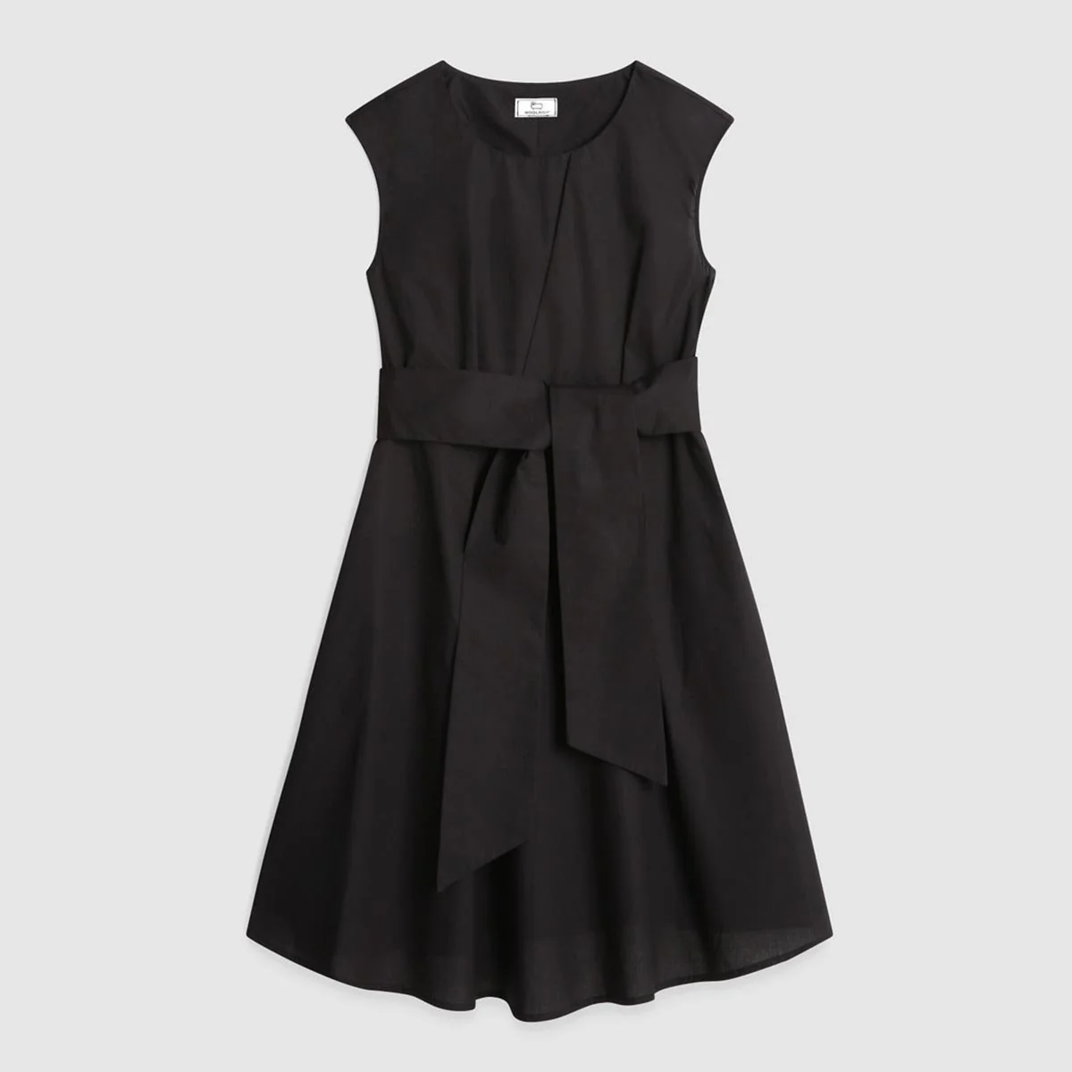 Abito Realizzato in popeline di cotone. Delicata plissettatura, scollo rotondo, maniche ad aletta, cintura automatica per la definizione della vita. Etichetta con logo Woolrich