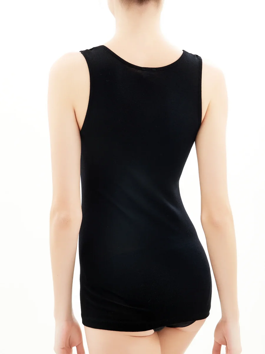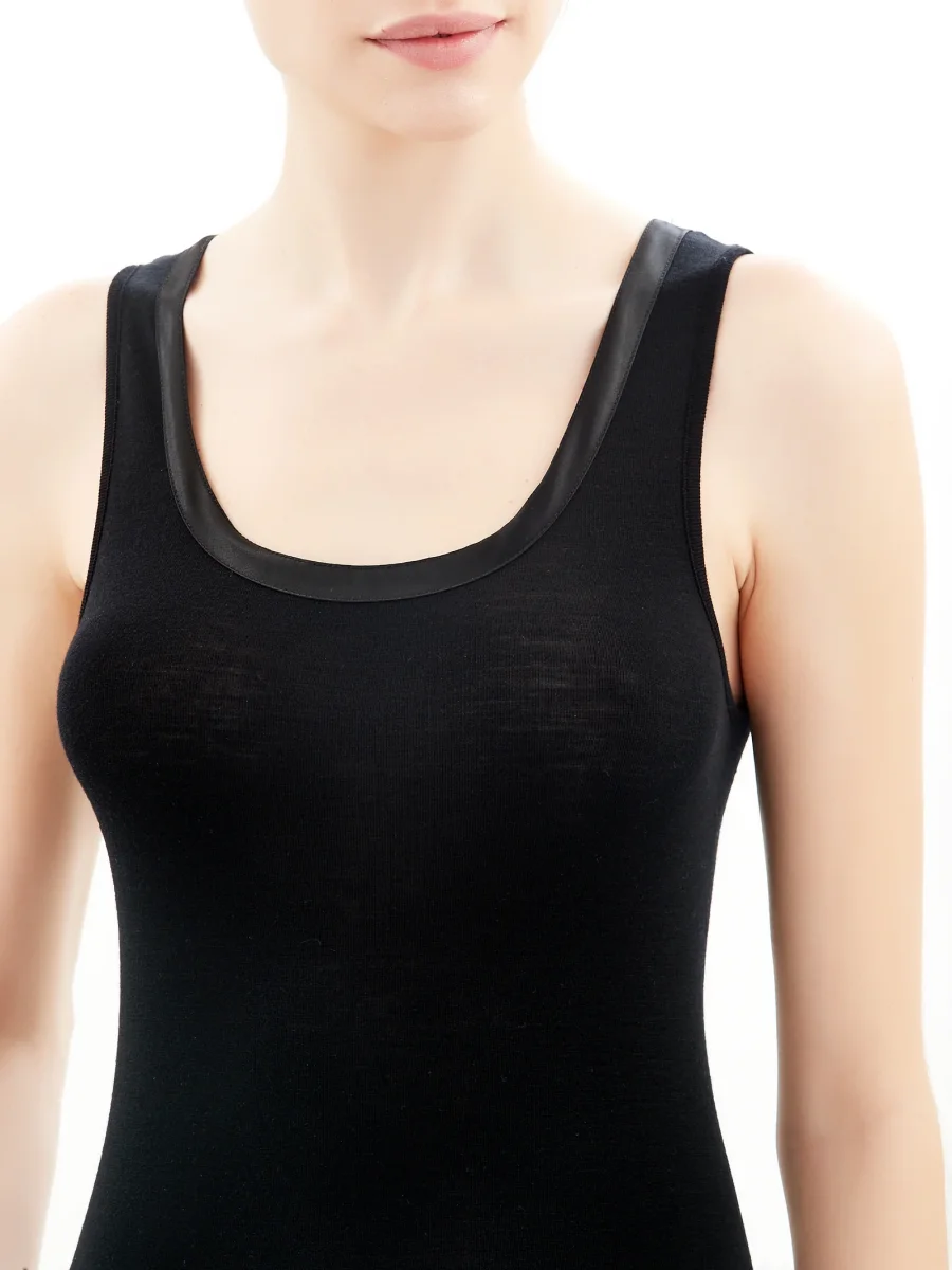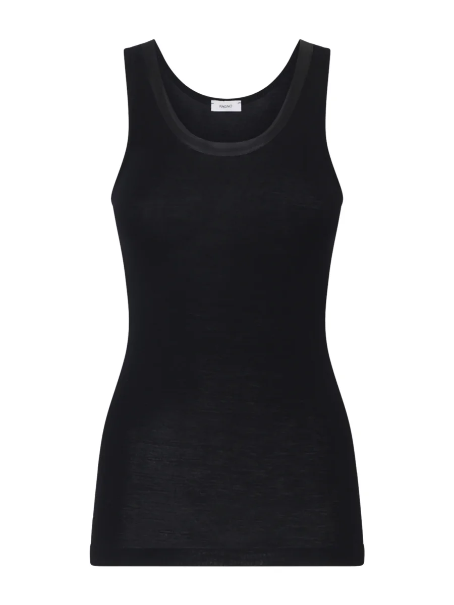 Wonderwool – Canottiera in lana ultrafine con profili in raso – Nero