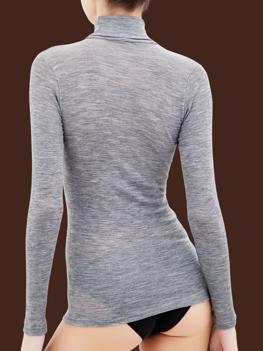 Dolcevita in costina 2×1 in pregiata pura lana ultrafine, sottile e con una sensazionale elasticità naturale fornita dal tessuto a costina.