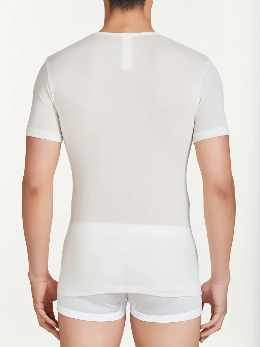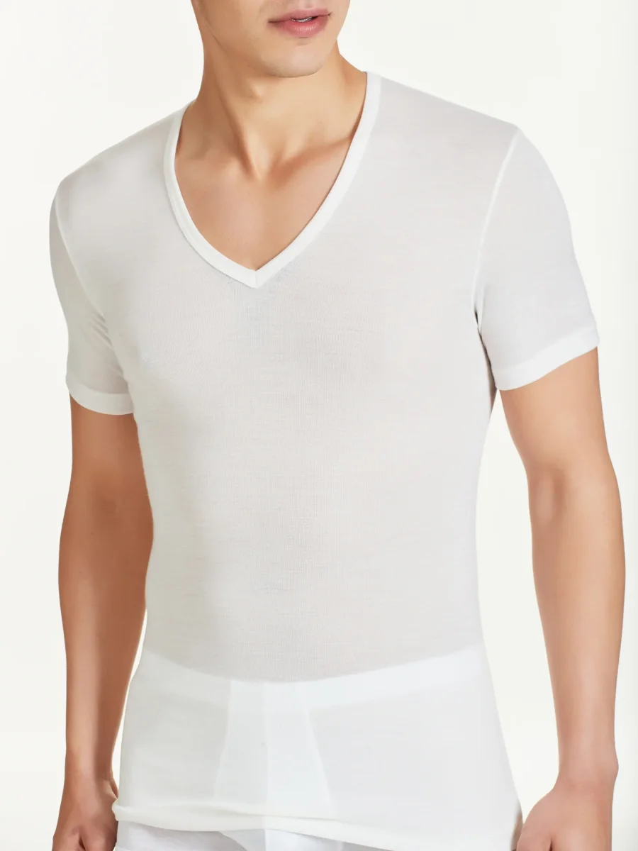 Wonderwool – Maglietta scollo a V in lana – B.co Seta