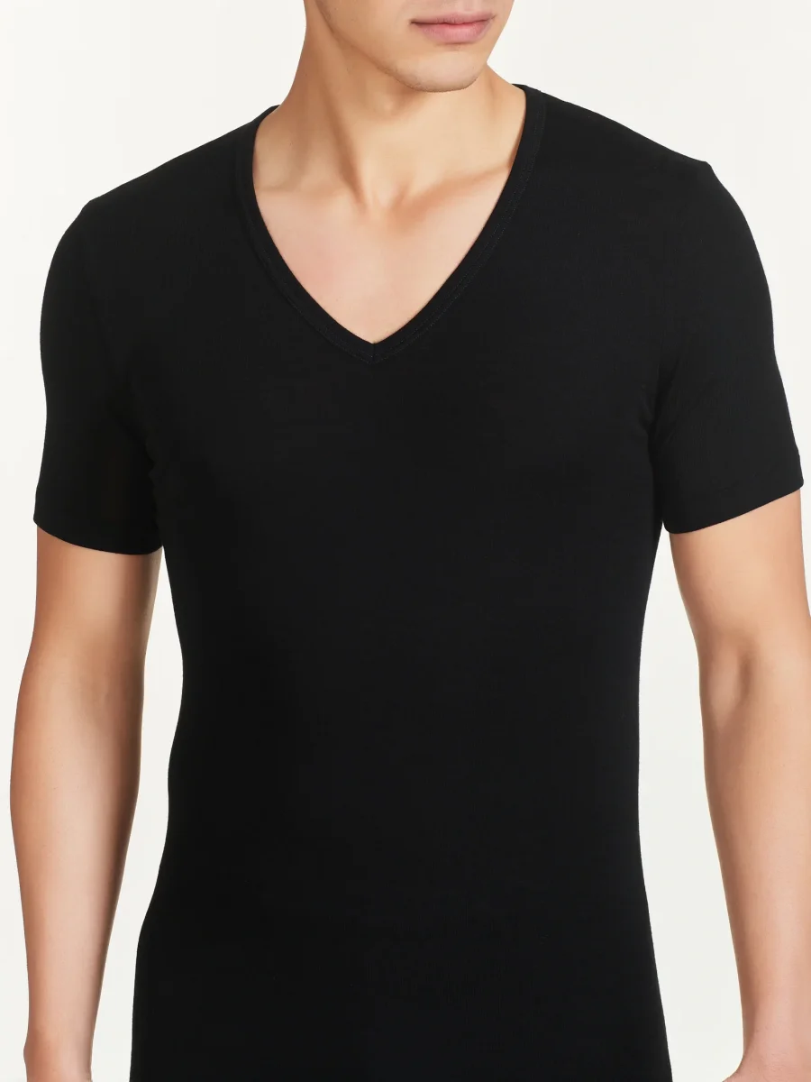 Wonderwool – Maglietta scollo a V in lana – Nero