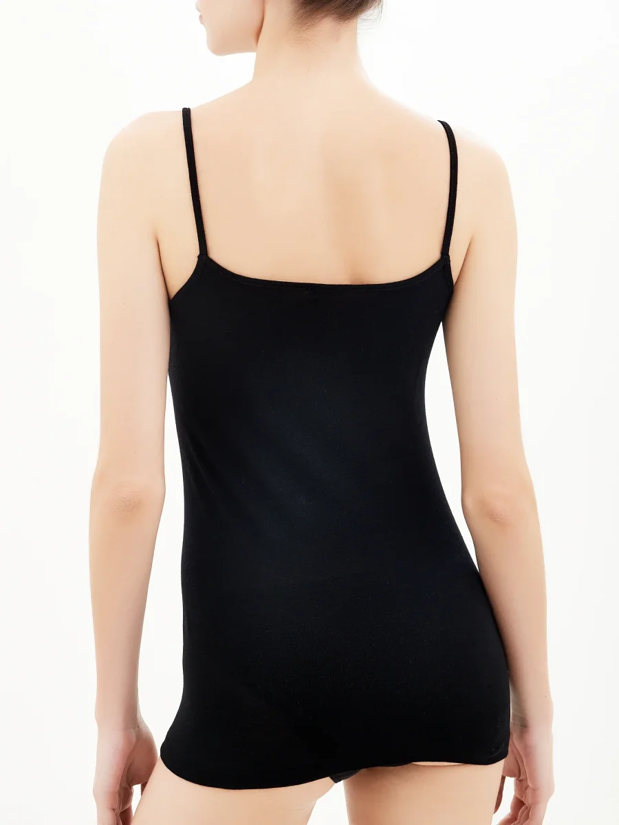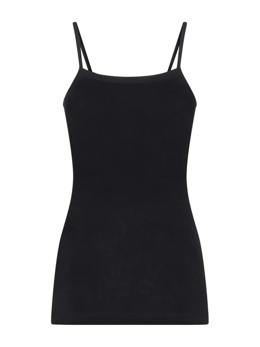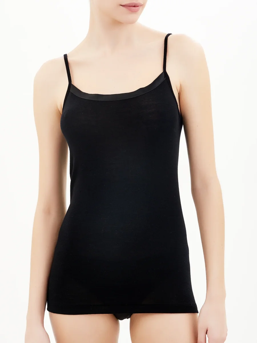 Wonderwool – Top in lana ultrafine con profili in raso – Nero