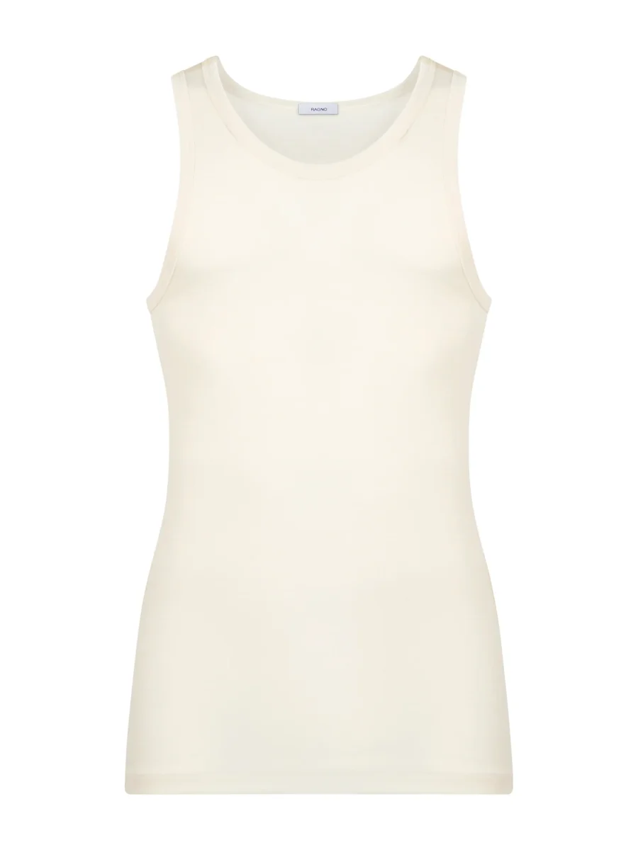 Canottiera a spalla larga in preziosa maglia unita di lana e seta.