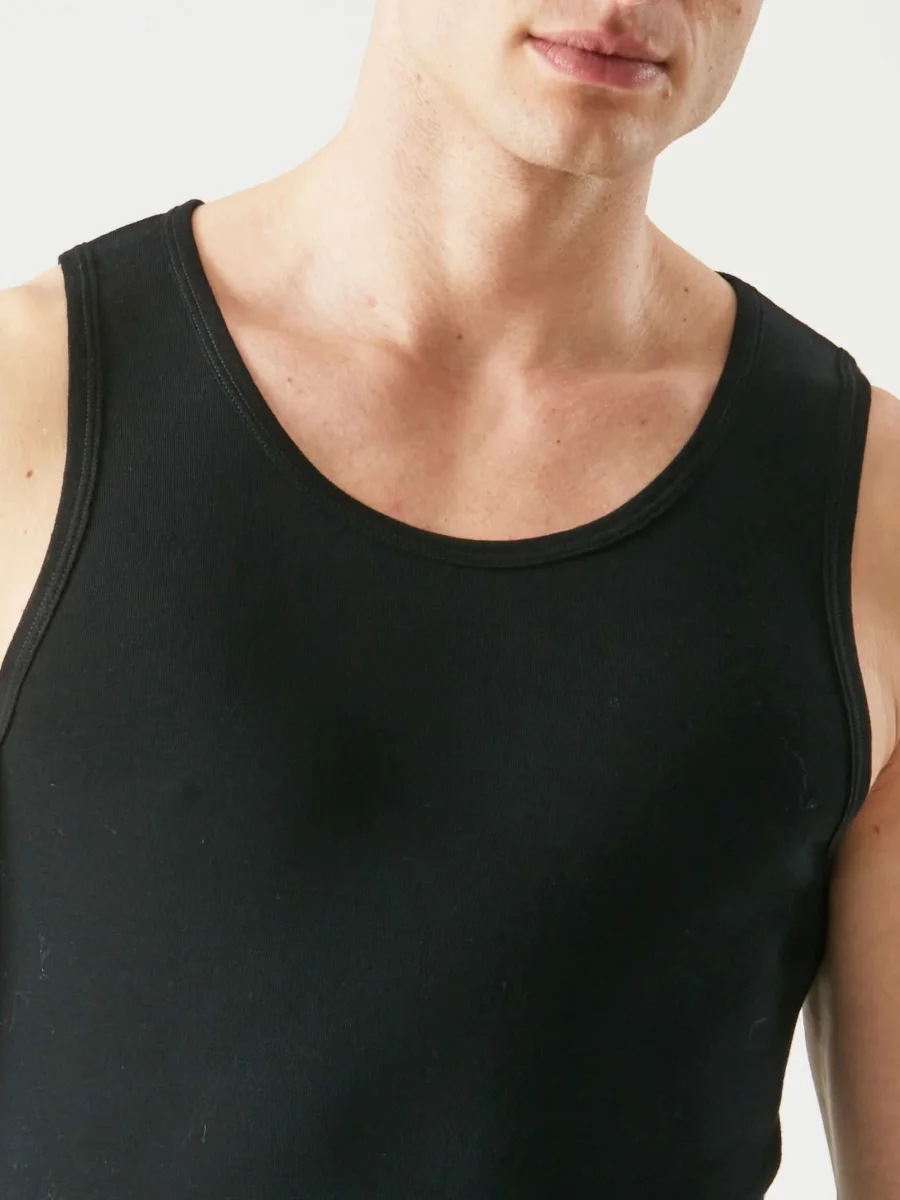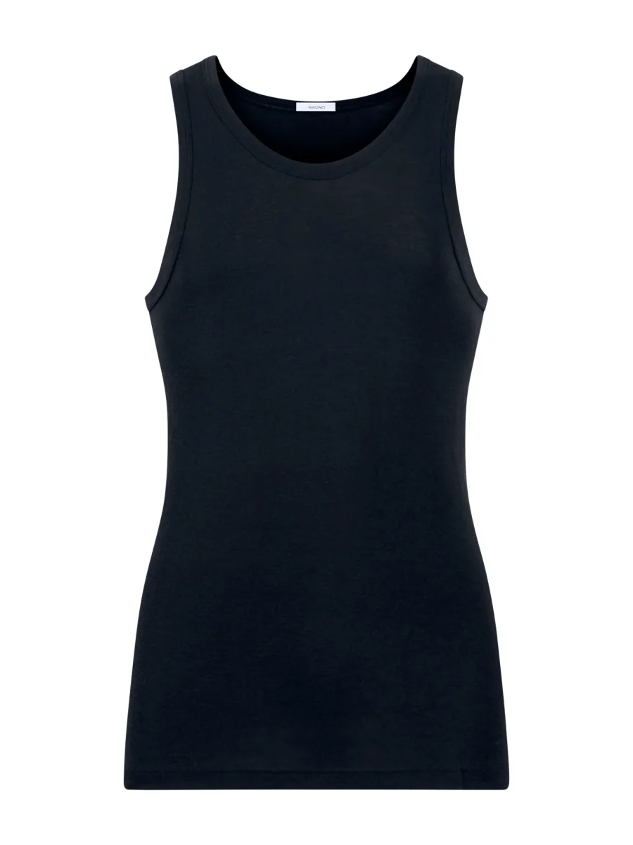 Canottiera a spalla larga in preziosa maglia unita di lana e seta.