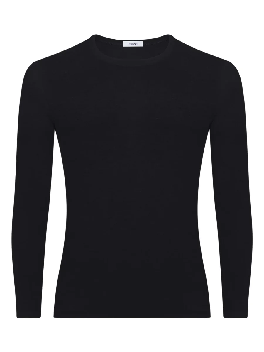 Maglietta girocollo a manica lunga in preziosa maglia unita di lana e seta.
