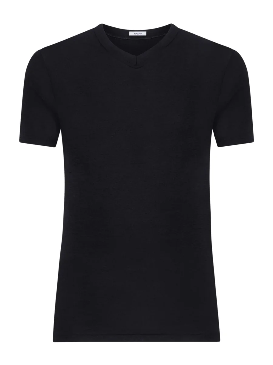 WSK – Maglietta scollo a V in lana e seta – Nero